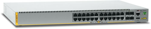 El Allied Telesis AT-x510-28GTX dispone de 24 puertos x 10/100 / 1000T y 4 x 10G / 1G SFP + puertos de enlace ascendente con dos fuentes de alimentación internas que comparten la carga de CA para una alta fiabilidad.